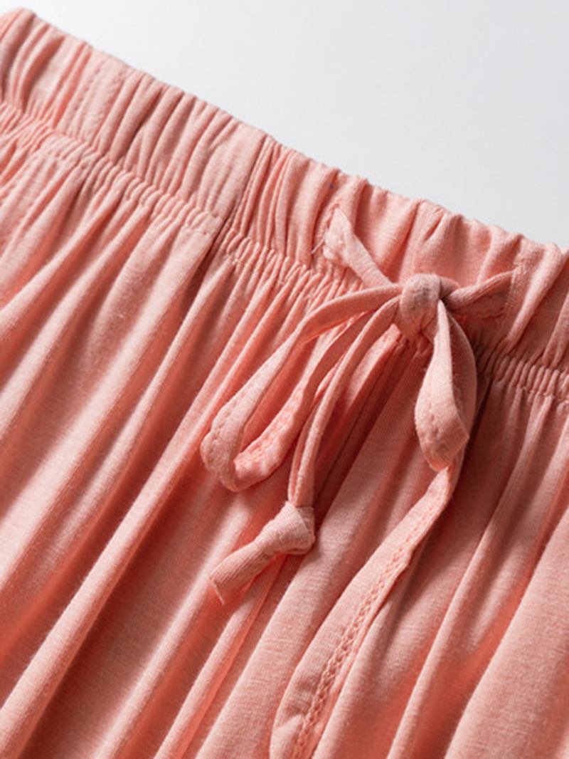 Kvinnor Stripe Bröstkuddar Kortärmad Top Dragsko Lösa Byxor Hem Modal Pyjamas Set