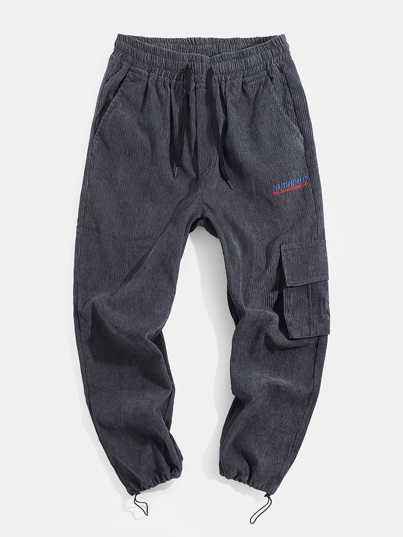 Enfärgad Manchesterficka För Män Med Dragsko Elastiska Byxor I Midjan