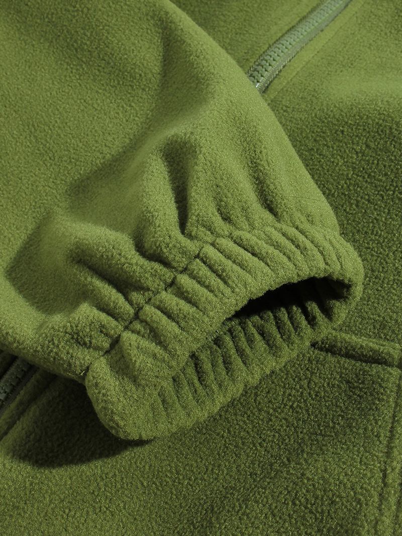 Enfärgad Polar Fleece Drop Shoulder Jacka För Män Med Ficka
