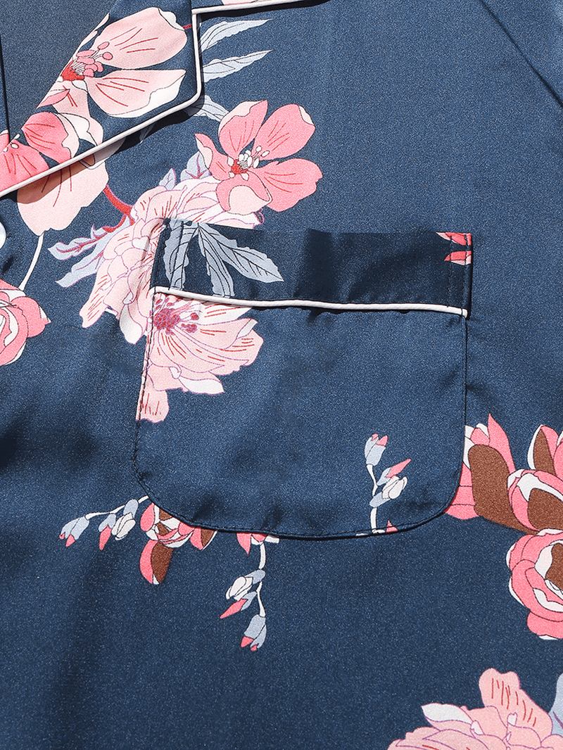Herr Blommönster Revere Krage Långärmad Pyjamas Set Med Kontrast Bindning
