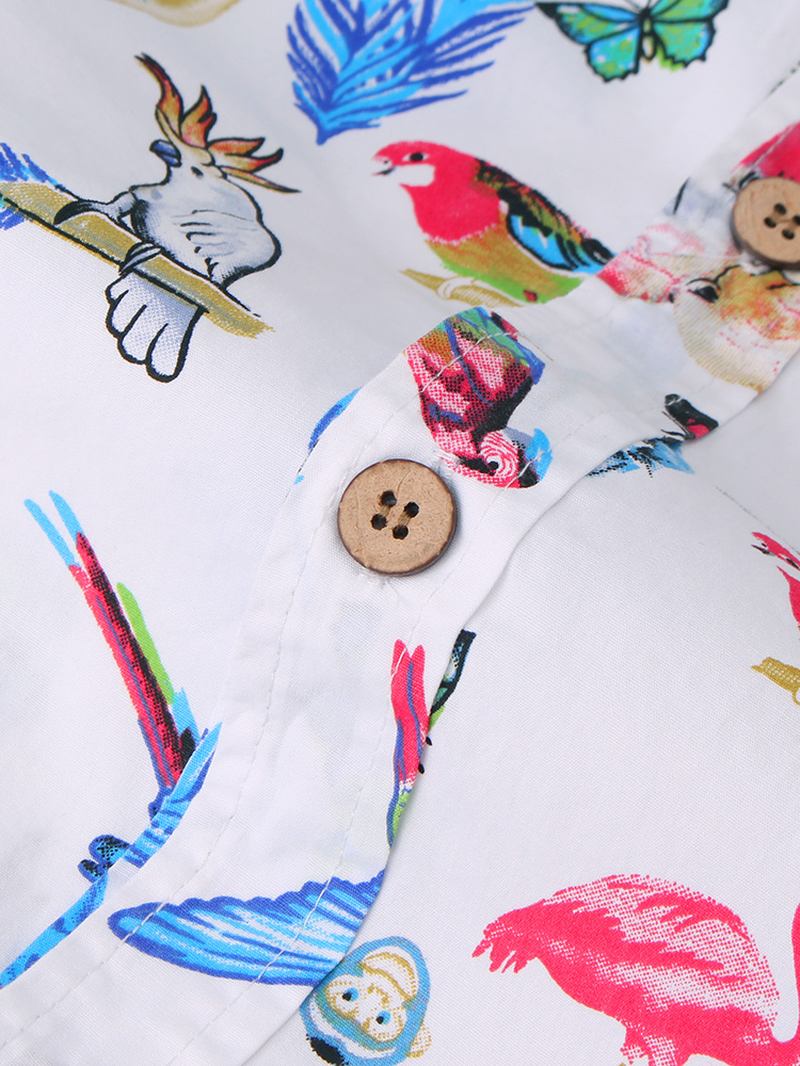 Herr Bomull Roliga Djur Tecknat Tryck Kausala Lösa Kortärmade Skjortor