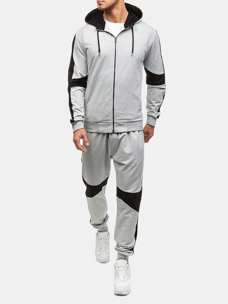 Herr Casual Sport Patchwork Hit Färg Running Byxor Hooded Mode Suit