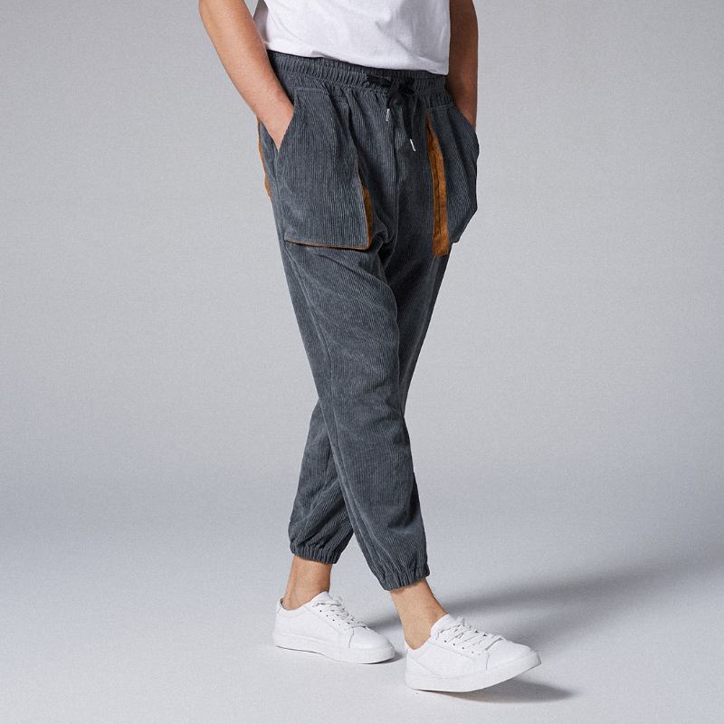 Herr Stora Fickor Vintage Ren Färg Elastiska Midja Byxor