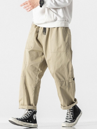 Herrficka Dragsko Elastisk Midja Enfärgad Cargo Byxor Med Mitten Av Midjan