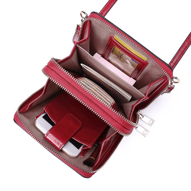 Kvinnlig Design Multifunktionstelefonväska Oil Wax Läder Crossbody-väska