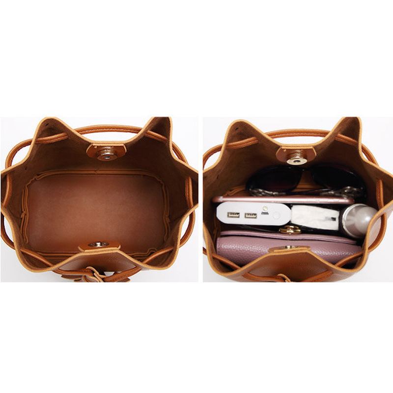 Kvinnor Pu-läder Dragsko Bucket Bags Retro Tofs Axelväskor Crossbody-väskor