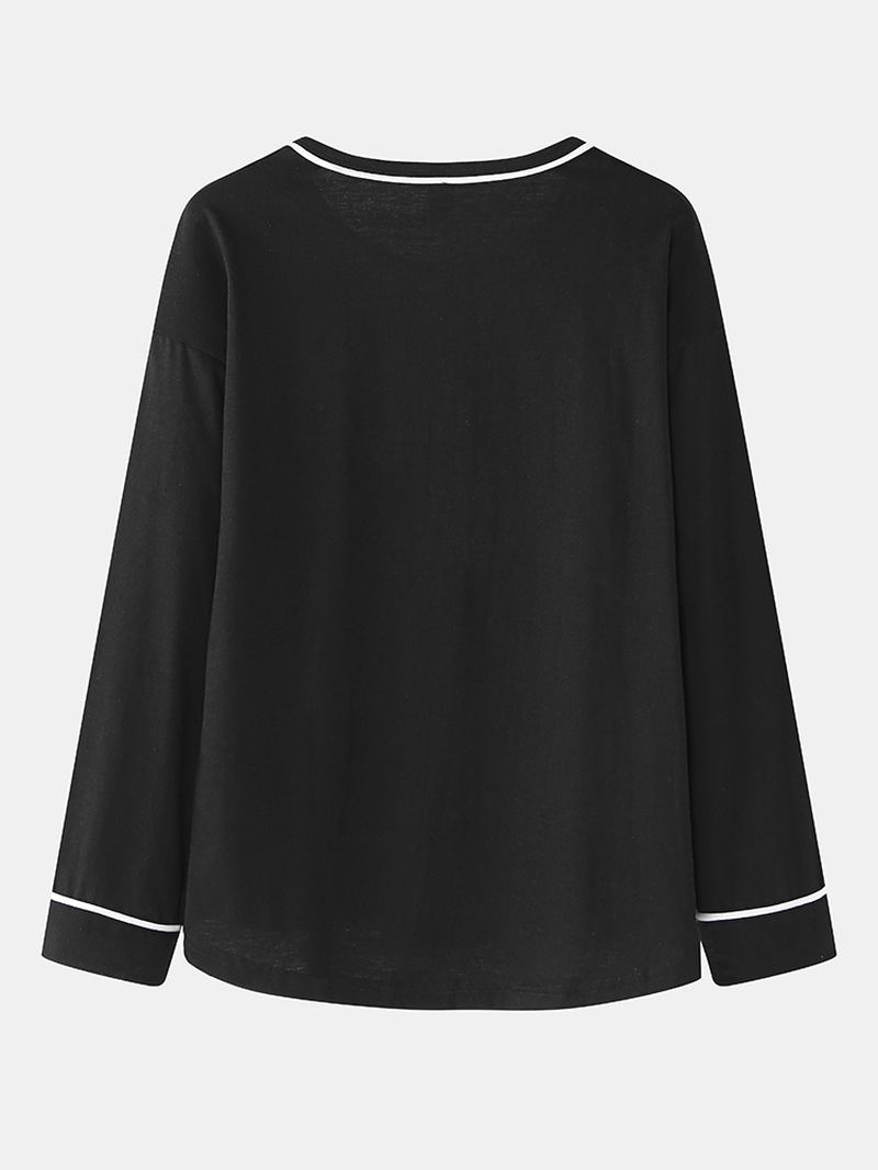 Kvinnor Tecknad Anime Print Svart Pullover Elastisk midja Byxor Hem Pajmaset