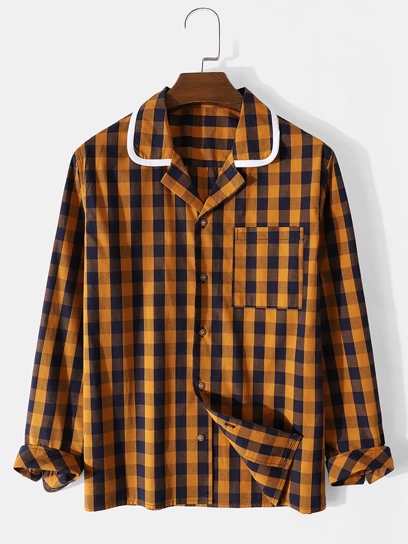 Långärmade Skjortor I 100% Bomull För Män I Rutig Kontrastkrage