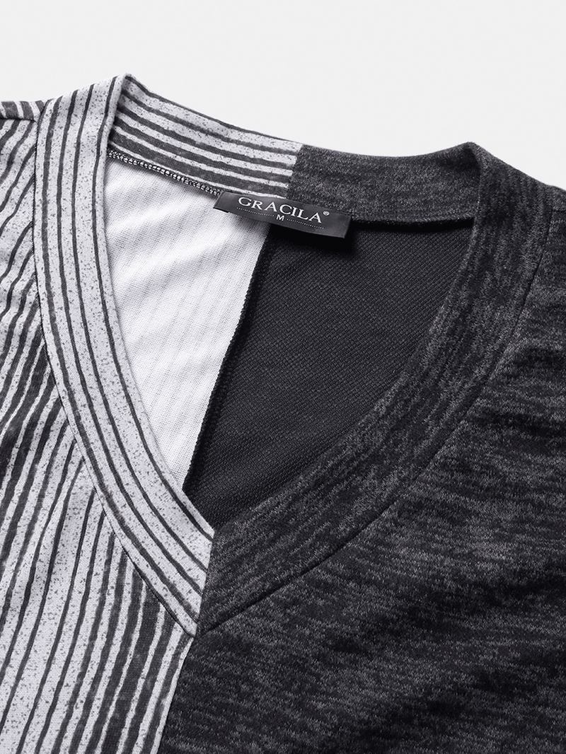 Randigt Tryck För Kvinnor Med Lapptäcke V-ringad Långärmad Avslappnad Blus