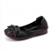 Retro Blomsterdekor Kohud Läder Rund Tå Mjuk Sula Casual Slip-on Platta Skor
