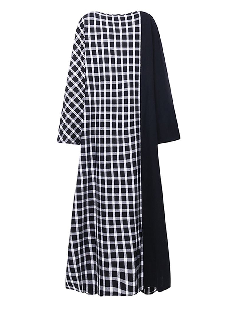 Rutig Patchwork Rund Hals Långärmad Casual Maxiklänning
